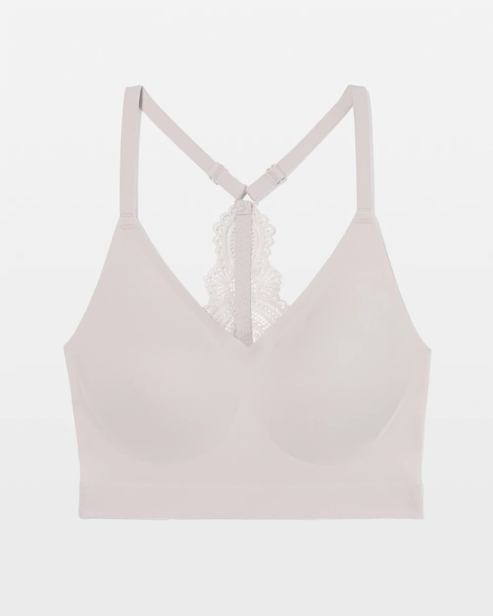 On the days when you just don't want to wear a bra, the Enbliss racerback lace bralette is the perfect choice. Finished with a lace back that's soft, smooth and luxuriously femininine, the bra is made from super soft, brushed fabric for perfect comfort. Removable pads give you the option for coverage when you want it and a natural shape when you don't.